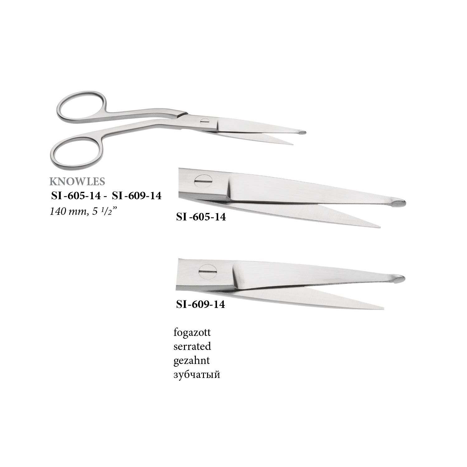 Knowles-bandage-scissors,-curved,-serrated,-140-mm