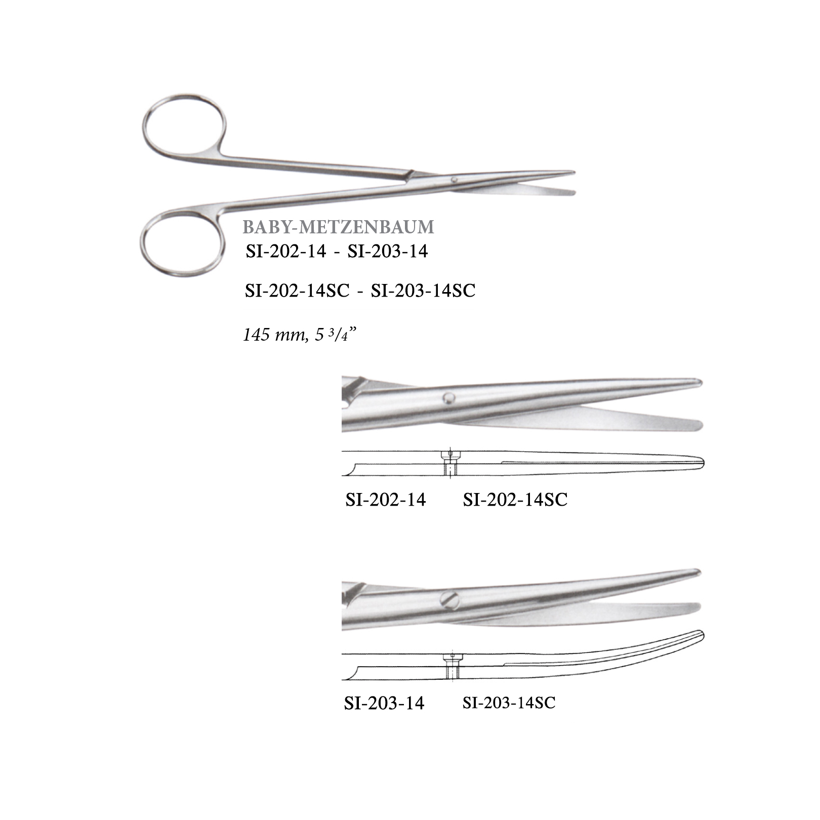 Baby Metzenbaum dissecting scissors, straight, 145-mm, Super Cut